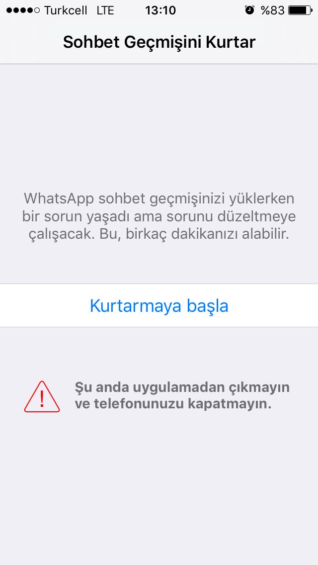 WhatsApp böyle bir hata verdi. Sil, yeniden yükle diyor da, gitti mi yani geçmiş yazışmalar vs. Var mı anlayan?